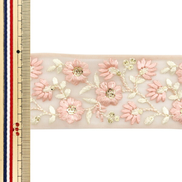 【数量5から】 手芸ブレード 『2024 インド刺繍ブレード ピンク×ホワイト 3530D』