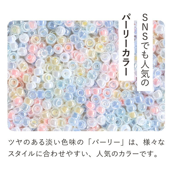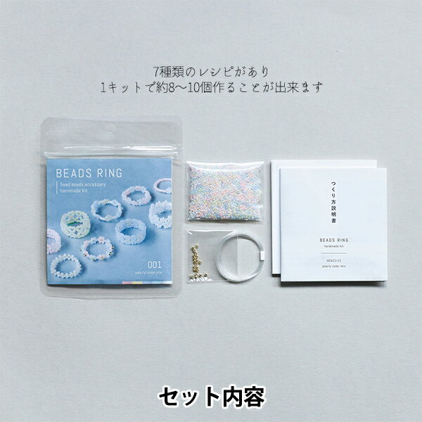 ビーズキット 『ビーズリングキット パーリーカラーミックス HCA31//1』 MIYUKI ミユキ 色であそぶ、ビーズリング。 人気のビーズリングを、自分で作って楽しめるキットです! 色数豊富なMIYUKIのシードビーズから、5色をミックス。 ポップからシックまで色や質感の異なる6種類のカラーバリエーションをご用意しました。 こちらはSNSでも人気のパーリーカラー! 1つのキットで8〜10個のリングを作れます。 7種類のレシピ付き。 作り方の基本も掲載していますので、ビーズワークが初めての方にもお楽しみいただけます。 [pearly color mix ビーズアクセサリー シードビーズ 指輪 アクセサリーキット ハンドメイド ] ◆セット内容:ミックスビーズ15g、メタリックパール、テグス、説明書 ◆素材:ガラス、ナイロン ◆難易度:★★☆☆☆ ◆原産国:日本 ※モニターによって実物のお色と若干異なる場合がございます。 【手芸用品・毛糸・生地の専門店 ユザワヤ】