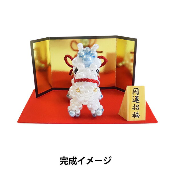 ビーズキット 『開運招福 午飾り BK-149』 HOBBIX 京都・西陣 ホビックス ビーズで作る和風縁起物置き飾りキット 穴の大きなビッグホールパールで作られた開運招福午飾りです。 たてがみや足先の青色パール、花柄模様が可愛らしさを引き立て、赤いひもが神事の馬らしさを表現しています。 馬は物事がうまくいく、幸運が駆け込んでくる、などと言われる縁起の良い動物です。 正月の飾り物として、また縁起物としてもおすすめです。 金屏風と赤もうせん、開運招福の台紙もセットになっています。 [干支 馬 午年 2026年 新年飾り] ◆サイズ(約): 午 8.5cm×7cm×3.5cm もうせん 12×7cm 金屏風 12×6cm ◆キット内容:パール アクリルビーズ 丸大ビーズ ひも テグス 金屏風 赤もうせん 開運招福台紙 作り図 ◆用意する物:ハサミ 定規 目打ち(パールの穴をつくのに使用するので太めの針などでも大丈夫です) ◆難易度:★★★☆☆ ◆製作時間目安:120分 ※モニターによって実物のお色と若干異なる場合がございます。 【手芸用品・毛糸・生地の専門店 ユザワヤ】