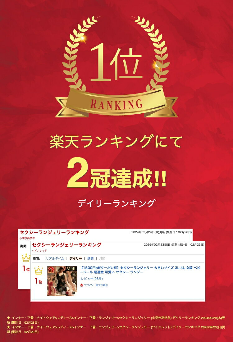 通常1〜4日以内の発送 最強翌日配送ご希望の方は【宅配便】+【日付指定】が必須です。 商品詳細説明★中身の見えない段ボールか配達袋に入れて【洋服】という表記でメール便で発送いたします。お急ぎの方は宅配便にご変更ください。宅配便でも3980円以上でしたら送料無料となります。SS後1980円なります。★商品概要★【品番】 w680【サイズ】F(M~XL)/3L/4L【カラー】ブラック/ホワイト/ワインレッド/ピンク注意:PCモニター設定や部屋の照明により多少、色の変化が感じられる場合がございます。◯ 商品内容 (1)ベビードール (2)Tバック(おまけ程度)★ワイヤーなし、パッドなしのスケスケデザインです。柔らかく高品質の総レースで女性らしさを引き出せます。素肌が見え隠れで、スケスケのレースを贅沢に使用したエプロンドレス風ベビードールです。サイドのリボンで調整できるから、体型を選ばないです。肩紐サイズ調節可能です。アジャスター付の細いストラップが華奢な背中魅せに。うっすら透けるお尻もエロ可愛いです。 商品説明 過激なセクシー下着初心者にもおすすめ!サイドリボンが可愛らしいセクシーランジェリー。 総レース仕様で上品な透け感を楽しめます。背中が大きく開いたデザインが女性らしさを際立たせ、魅力的なシルエットを演出。豊富な大きいサイズ展開で、自分にぴったりのフィット感が見つかります!さらに、おまけショーツ付きですぐにお楽しみも。特別な夜やプレゼントにも最適なアイテムです 自分らしくかわいく YY&YY ◇当店ではセクシーランジェリーやコスプレ衣装を豊富に取り揃えています。個性を引き立てる魅力的なデザインと、質の高い素材を使用した商品をリーズナブルな価格でご提供。特別な日やイベントにぴったりなコスプレ衣装はもちろん、普段使いできるセクシーランジェリーもご用意しています。大人の魅力を引き出すアイテムを見つけて、特別な瞬間を演出してください。◇レディースファッションアイテムも取り扱っています。デザイン、シルエット、素材にこだわったアイテムをお手頃価格でお届け。忙しい毎日でもおしゃれを楽しみたい方にぴったりなアイテムを提供しています。シンプルなブラウス、流行のミニスカート、上品なミモレスカート、カジュアルなロングパンツやショートパンツ、洗練されたワンピース…など、多彩なアイテムが盛りだくさん!>>ファッションアイテムをチェックするぜひ当店のラインナップをご覧ください♥ 検索用 #セクシーランジェリー #可愛いセクシーランジェリー#セクシーランジェリ 過激 #セクシーランジェリ 過激 大きいサイズ #セクシー コスチューム 過激 #セクシー コスチューム #セクシー ルームウェア #セクシーショーツ レディース#下着 大きいサイズ #ベビードール 大きいサイズ #レディースショーツ大きいサイズ #ストッキング 大きいサイズ #エロい下着 #穴あき下着 #股割れ #ボディコン #過激 #レディースショーツ Tバック #可愛いベビードール #紐パン 可愛い #キャミソール 部屋着 #大きいサイズ #上下セット #ぽっちゃり #XL #3L #4L #グラマー #プラスサイズ #プレイスーツ #ガーターストッキング #ガーターベルトストッキング #スケスケワンピース #ボディストッキング #全身タイツセクシー #オープンブラ #オープンショーツ #セクシーコスプレ #メイド服 #エロいコスプレ #セーラー服コスプレ #学生服コスプレ #チャイナ服コスプレ #チャイナドレスコスプレ #エロ #大人 #通販 #専門店 #ギフト #贈り物通常1〜4日以内の発送 最強翌日配送ご希望の方は【宅配便】+【日付指定】が必須です。 商品詳細説明★中身の見えない段ボールか配達袋に入れて【洋服】という表記でメール便で発送いたします。お急ぎの方は宅配便にご変更ください。宅配便でも3980円以上でしたら送料無料となります。SS後1980円なります。★商品概要★【品番】 w680【サイズ】F(M~XL)/3L/4L【カラー】ブラック/ホワイト/ワインレッド/ピンク注意:PCモニター設定や部屋の照明により多少、色の変化が感じられる場合がございます。◯ 商品内容 (1)ベビードール (2)Tバック(おまけ程度)★ワイヤーなし、パッドなしのスケスケデザインです。柔らかく高品質の総レースで女性らしさを引き出せます。素肌が見え隠れで、スケスケのレースを贅沢に使用したエプロンドレス風ベビードールです。サイドのリボンで調整できるから、体型を選ばないです。肩紐サイズ調節可能です。アジャスター付の細いストラップが華奢な背中魅せに。うっすら透けるお尻もエロ可愛いです。 自分らしくかわいく YY&YY ◇当店ではセクシーランジェリーやコスプレ衣装を豊富に取り揃えています。個性を引き立てる魅力的なデザインと、質の高い素材を使用した商品をリーズナブルな価格でご提供。特別な日やイベントにぴったりなコスプレ衣装はもちろん、普段使いできるセクシーランジェリーもご用意しています。大人の魅力を引き出すアイテムを見つけて、特別な瞬間を演出