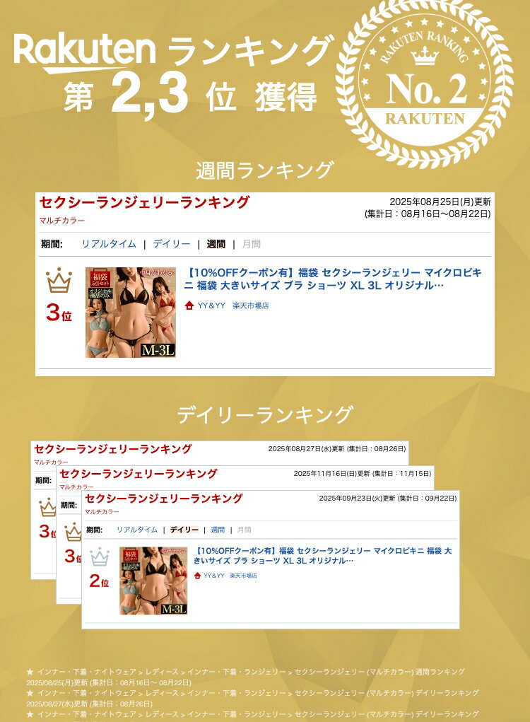 通常1〜4日以内の発送 最強翌日配送ご希望の方は【宅配便】+【日付指定】が必須です。 商品詳細説明 中身の見えない配達袋に入れて[洋服]という表示でメール便にて発送致します。お急ぎの方は宅配便にご変更ください。 ★商品概要★【品番】lk19注意:PCモニター設定や部屋の照明により多少、色の変化が感じられる場合がございます。★中身の見えない配達袋に入れて[洋服]という表示でメール便にて発送致します。お急ぎの方は宅配便にご変更ください。★商品内容 中身がわかるオリジナル商品のみの福袋6点セット★注意事項1.それぞれの商品のカラーやショーツのデザインはお選びいただけませんので、ご了承ください。2.商品のサイズはフリーサイズ(M~L)と大きいサイズ(XL~3L)からお選びいただけます。3.福袋の中身が重複することはございませんが、他の福袋を複数ご購入いただくと同じ商品が被ってしまう可能性がございます。4.イベントセール品のため初期不良以外(サイズやイメージ違いなど)の理由では返品・交換できかねます。5.ご注文確定後の変更・キャンセルはお受けすることができません。 自分らしくかわいく YY&YY ◇当店ではセクシーランジェリーやコスプレ衣装を豊富に取り揃えています。個性を引き立てる魅力的なデザインと、質の高い素材を使用した商品をリーズナブルな価格でご提供。特別な日やイベントにぴったりなコスプレ衣装はもちろん、普段使いできるセクシーランジェリーもご用意しています。大人の魅力を引き出すアイテムを見つけて、特別な瞬間を演出してください。◇レディースファッションアイテムも取り扱っています。デザイン、シルエット、素材にこだわったアイテムをお手頃価格でお届け。忙しい毎日でもおしゃれを楽しみたい方にぴったりなアイテムを提供しています。シンプルなブラウス、流行のミニスカート、上品なミモレスカート、カジュアルなロングパンツやショートパンツ、洗練されたワンピース…など、多彩なアイテムが盛りだくさん!>>ファッションアイテムをチェックするぜひ当店のラインナップをご覧ください♥ 検索用 #セクシーランジェリー #可愛いセクシーランジェリー#セクシーランジェリ 過激 #セクシーランジェリ 過激 大きいサイズ #セクシー コスチューム 過激 #セクシー コスチューム #セクシー ルームウェア #セクシーショーツ レディース#下着 大きいサイズ #ベビードール 大きいサイズ #レディースショーツ大きいサイズ #ストッキング 大きいサイズ #エロい下着 #穴あき下着 #股割れ #ボディコン #過激 #レディースショーツ Tバック #可愛いベビードール #紐パン 可愛い #キャミソール 部屋着 #大きいサイズ #上下セット #ぽっちゃり #XL #3L #4L #グラマー #プラスサイズ #プレイスーツ #ガーターストッキング #ガーターベルトストッキング #スケスケワンピース #ボディストッキング #全身タイツセクシー #オープンブラ #オープンショーツ #セクシーコスプレ #メイド服 #エロいコスプレ #セーラー服コスプレ #学生服コスプレ #チャイナ服コスプレ #チャイナドレスコスプレ #エロ #大人 #通販 #専門店 #ギフト #贈り物通常1〜4日以内の発送 最強翌日配送ご希望の方は【宅配便】+【日付指定】が必須です。 商品詳細説明 中身の見えない配達袋に入れて[洋服]という表示でメール便にて発送致します。お急ぎの方は宅配便にご変更ください。 2025/10/22 福袋の内容商品を一部変更し、それに伴い画像も差し替えております。 ★商品概要★【品番】lk19注意:PCモニター設定や部屋の照明により多少、色の変化が感じられる場合がございます。★中身の見えない配達袋に入れて[洋服]という表示でメール便にて発送致します。お急ぎの方は宅配便にご変更ください。★商品内容 中身がわかるオリジナル商品のみの福袋6点セット★注意事項1.それぞれの商品のカラーやショーツのデザインはお選びいただけませんので、ご了承ください。2.商品のサイズはフリーサイズ(M~L)と大きいサイズ(XL~3L)からお選びいただけます。3.福袋の中身が重複することはございませんが、他の福袋を複数ご購入いただくと同じ商品が被ってしまう可能性がございます。4.イベントセール品のため初期不良以外(サイズやイメージ違いなど)の理由では返品・交換できかねます。5.ご注文確定後の変更・キャンセルはお受けすることができません。 自分らしくかわいく YY&YY ◇当店ではセクシーランジェリーやコスプレ衣装を豊富に取り揃えています。個性を引き立てる魅力的なデザインと、質の高い素材を使用した商品をリーズナブルな価格でご提供。特別な日やイベントにぴったりなコスプレ衣装はもちろん、普段使いできるセクシーランジェリーもご用意しています。大人の魅力を引き出すアイテムを見つけて、特別な瞬間を演出してください。◇レディースファッションアイテムも取り扱っています。デザイン、シルエット、素材にこだわったアイテムをお手頃価格でお届け。忙しい毎日でもおし