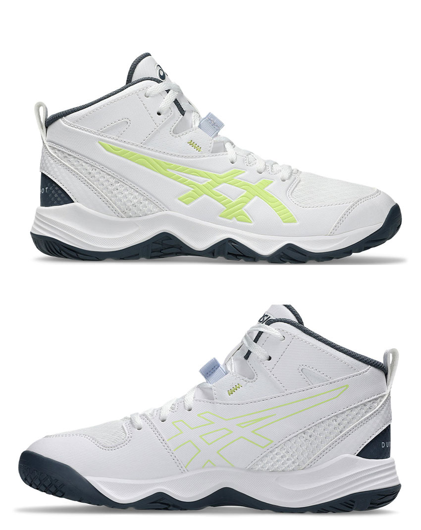 アシックス DUNKSHOT MB 10 バスケットボールシューズ キッズ ジュニア 子供 ホワイト 白 イエロー 黄 ASICS 1064A019 靴 バスケットボール バスケ スポーツ スポーティ 成長期 サポート性 フィット 運動 体育館 ロゴ ブランド 部活 練習