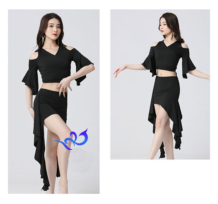 ベリーダンス衣装 セット衣装 無地 伸縮性 レッスン着 ベリーダンス 衣装セット インナーパンツ付き ショット丈 スカート 半袖 肩出し トップス おしゃれ ベリーダンス 衣装 ダンス レッスン着 舞台 ステージ衣装 ダンスウェア パープル ブルー ブラック レッド ピンク