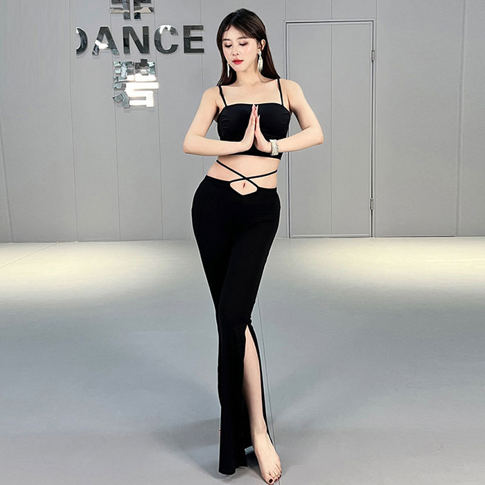 ダンスパンツ スリット入り ストレッチパンツ ロングパンツ ブラック 黒 社交ダンス ベリーダンス ヨガパンツ 美脚パンツ ジャズパンツ レディース 大人 ダンス衣装 ブラック