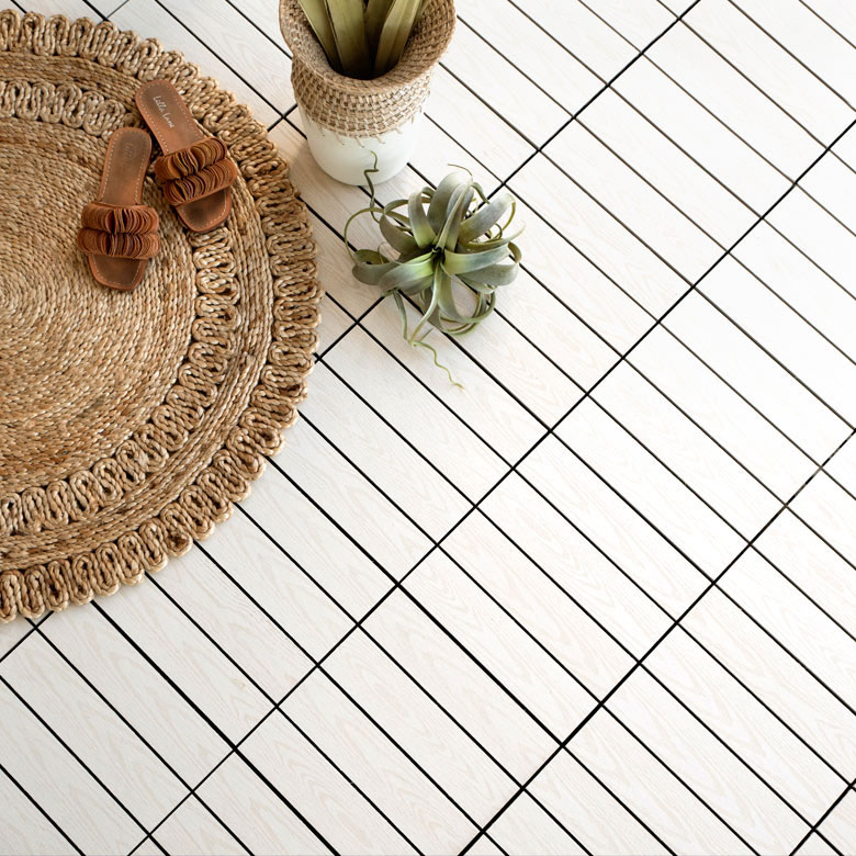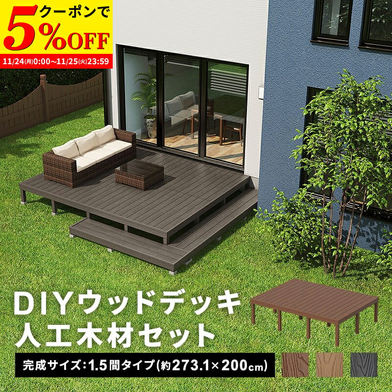 よく一緒に購入されている商品 人工芝マット 人工芝 リアル ジョイントマッ8,800円 ウッドデッキタイル 人工木 樹脂 正方形 四8,200円~ ウッドデッキタイル 人工木 樹脂 ロング ワ5,900円~ ■サイズ(cm) 【1枚あたり ジョイント部分を含むサイズ】 約 W 30.5 × D 30.5 × H 2.0 【1枚あたり ジョイント部分を含まないサイズ】 約 W 29.5 × D 29.5 × H 1.0 ※多少サイズは前後します。 ■内容 15枚セット/面積150cm×90cm程度の広さ分 20枚セット/面積150cm×120cm程度の広さ分 ■重量 アイボリー:1枚 約 1.05 kg その他カラー:1枚 約 0.9 kg ■素材 ウッド部分:人工木(WPC) ジョイントパーツ部分:ポリエチレン ■生産国 中国 ■追加購入のご注意 ※こちらの商品は2023年4月18日に仕様が新しくなりました(Bタイプ)。仕様変更以前に購入分の商品とはジョイントできませんのでご注意ください。 [b-65121-lb-20pcs b-65121-bw-20pcs b-65121-ch-20pcs b-65121-iv-20pcs b-65119-iv-15pcs b-65121-lb-15pcs b-65121-bw-15pcs b-65121-ch-15pcs b-65121-iv-15pcs] 類似商品はこちら ウッドデッキタイル 人工木 樹脂 正方形 四9,440円~ ウッドデッキタイル 人工木 樹脂 正方形 四4,900円~ ウッドデッキタイル 人工木 樹脂 正方形 四8,200円~ ウッドデッキタイル 人工木 樹脂 正方形 四6,319円~ ウッドデッキタイル 人工木 樹脂 正方形 四7,504円 ウッドデッキタイル 人工木 樹脂 正方形 四7,504円 ウッドデッキタイル 人工木 樹脂 正方形 四7,504円 ウッドデッキタイル 人工木 樹脂 ロング ワ15,900円 ウッドデッキタイル 人工木 樹脂 ロング ワ11,000円新着商品はこちら2025/11/21 ラグ 洗える ラグマット おしゃれ 130×4,900円~2025/11/15 フロアタイル サンプル ボンド施工タイプ ド99円2025/11/15 クリスマスツリー型 ライト LED Sサイズ3,850円再販商品はこちら2025/11/23 テーブル こたつ こたつテーブル W 75c11,770円2025/11/22 コットンキリム クッションカバー 50×451,860円2025/11/22 バスケット かご 約 11L 深型 スリム 2,900円2025/11/23 更新 お手入れ不要で、丈夫に長持ち リアル木目の人工木ウッドデッキタイル[ 正方形ストレートタイプ/15枚セット・20枚セット ] まるで天然木のような木目のウッドデッキパネル。 よくある人工木のウッドデッキだと、木目のない無機質な見た目で 「いかにも人工的」に見えがちですが、当店のウッドパネルは 丈夫な人工木でありながら、温かみのある本物そっくりの木目を実現しました。 敷くだけのジョイントタイプという手軽さも魅力。 施工無し&軽量なので、女性ひとりでも簡単に敷くことができます。 居心地のいいテラスやベランダで、おうちリゾートを楽しんで。 ジョイントタイル一覧を見る > 人工木とは… 人工木は樹脂木や再生木とも呼ばれ樹脂(プラスチック)と木粉を混ぜ合わせて作られたもの。 近年、エクステリア業界で人気が高まってきています。 なぜなら人工木は、雨や日差しによる劣化に強く、耐腐食性もあります。 天然木のように腐食やシロアリで壊れてしまうこともありません。 人工木は塗装の必要がないので、お手入れも不要。 プラスチックを多く含んでいるので腐らず天然木と比較して色褪せも少ないので長くお使いいただけます。 経年によるささくれや割れの心配もありません。 憧れのテラスをご自宅で ガーデニングを楽しんだり、コーヒーブレイクにも。 ゆったりした時間を過ごせる、憧れのデッキスペースもウッドパネルなら簡単に実現! 広いお庭がなくても、ベランダでとっても素敵な空間をつくれます。 ジョイントするだけで敷ける 隣のパネルにはめ込むだけの簡単ジョイント式。 軽量タイプで1枚1枚が軽いので、女性でもラクラク施工できます。 天然木みたいなリアルな木目 憧れの天然木デッキを、お手入れいらずの人工木で再現。 温かみのある本物そっくりの木目で 殺風景なベランダや庭を格上げしてくれます。 おうちリゾートも簡単に叶う リゾートのようなベランダ作りや リビング感覚でくつろげるアウトドアリビングも簡単に楽しめます。 外の風をより心地よく感じる、開放的な空間に。 アレンジ次第でいろんな敷き方を 芝タイルやカラーをミックスしたり 縦横を交互に変えてジョイントするのもおすすめ。 空間の広さやイメージに合わせて組み合わせや敷き方を変える楽しみも醍醐味。 組み合わせ出来るジョイントタイル一覧 > お手入れいらずの人工木 天然木と違い湿気の吸収率が低いので、雨やシロアリによる腐食の心配もなし。 耐久性も抜群で、きれいな状態で長持ちします。 防腐剤などのメンテナンスも不要なので、お子様やペットにも安心です。 水はけが良く、お掃除簡単 腐りにくいので水でゴシゴシ洗っても平気! 隙間があるのでしっかり排水できます。 雨にも強い コードも通せる 変形や腐食の心配がなくきれいな状態で長持ち。 照明やイルミネーションの電気コードもすっきり! カットもできます ノコギリでカットすることも可能。 裏面のプラスチック部分も簡単にカットできます。 障害物のある角にもピッタリと合わせられるので 柱や壁があっても