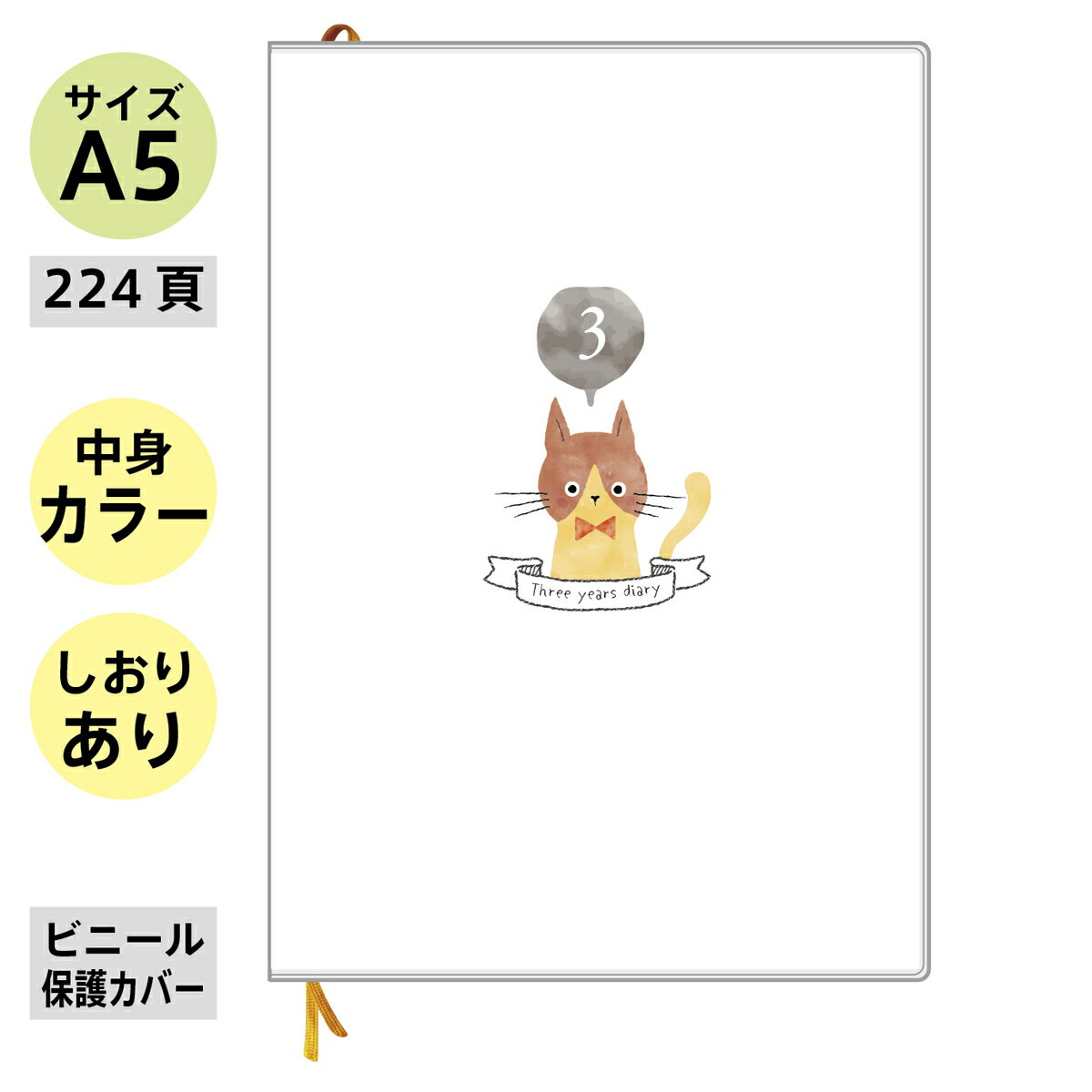 日記帳 3年日記 A5【フルカラー/しおり付き/ねこデザイン】ノートライフ 日本製 ソフトカバー 連用 日付表示あり(いつからでも始められる)2025 ギフト