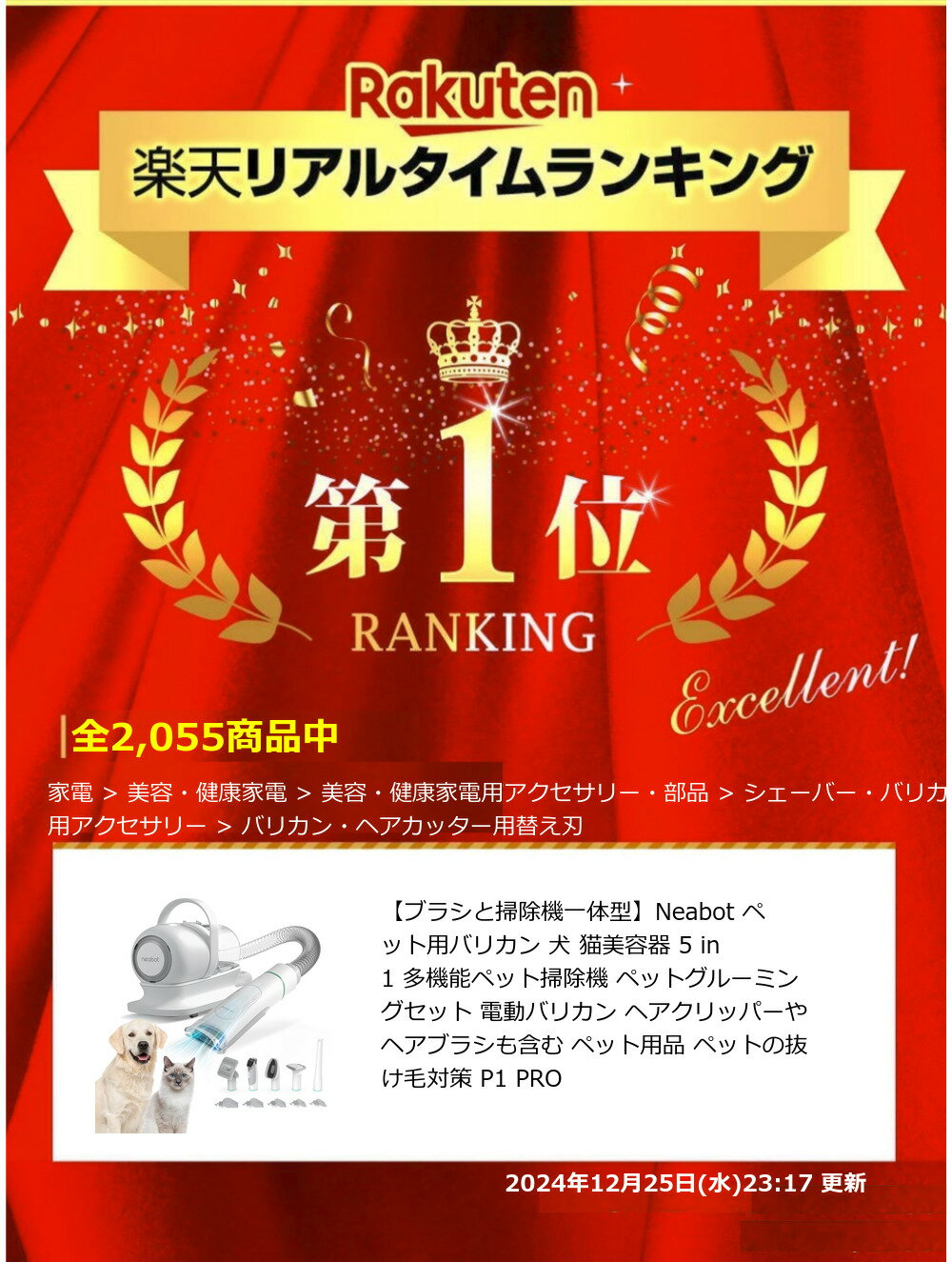 【楽天ランキング1位獲得】【ブラシと掃除機一体型】Neabot ペット用バリカン 犬 猫美容器 5 in 1 多機能ペット掃除機 ペットグルーミングセット 電動バリカン ヘアクリッパーやヘアブラ
