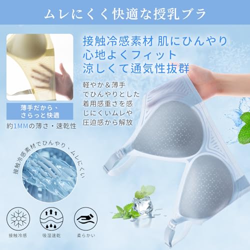 [ヴェーミア] マタニティブラ 夏 涼しい 涼感超薄型 シームレス【授乳ブラ 産後プレゼントママ用】前開きストラップオープン型 冷感ノンワイヤー 薄手トップスに透けずシルエット美を実