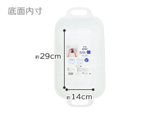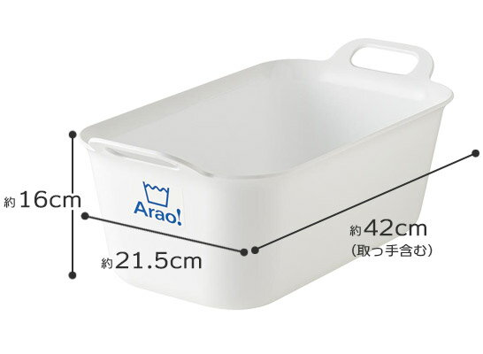 商品サイズ (約)縦42cm×横21.5cm×高さ16cm 重 量 (約)445g 材 質 ポリプロピレン ※製品仕様、及び包装仕様はメーカーの都合により予告なく変更されることがございます。ご了承ください。 ※お客様がお使いのモニターの環境により、画面上の色と実際の商品の色が多少異なる場合がございます。 カテゴリ:タライ、盥、洗たく、洗い物、洗いもの、浸け置き、つけおき、4901065840234Arao! たらい 小 使いやすい持ち手がついた、シンプルなデザインのたらいです。 洗濯物の手洗いや浸けおき洗いに。 洗剤などの収納にも便利です。