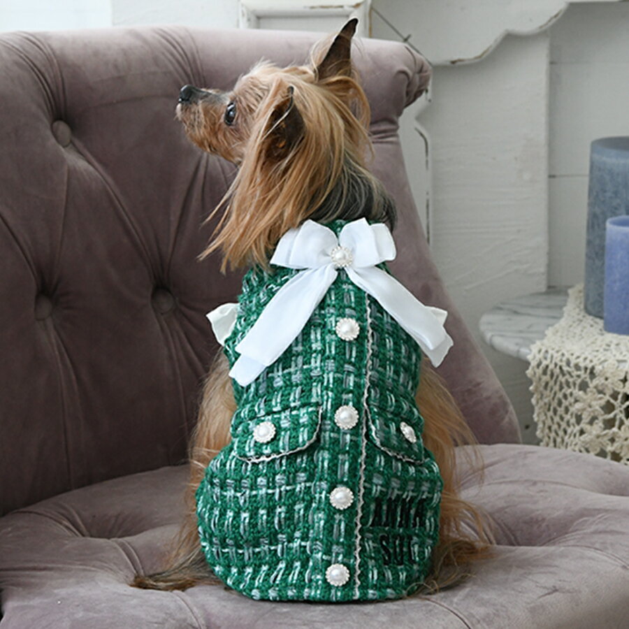 ANNA SUI アナスイ アナ スイ アナ・スイ リボン付きツイードワンピース | ワンピース 犬服 ドッグウェア 23a