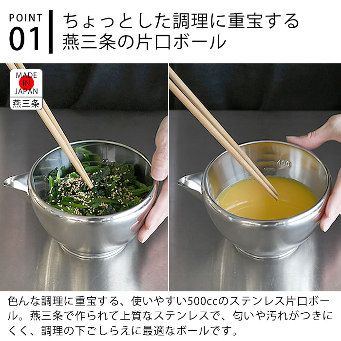 \楽天1位/調理器具 ボール カンダ 片口ボール ステンレス 500cc 調味料 ボール 卵焼き ボール 日本製 計量カップ 目盛付き 卵 オールステンレス ドレッシング 調理用品 下ごしらえ 燕三条