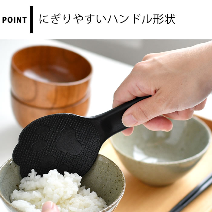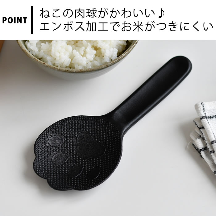 猫 キッチン 貝印 猫のしゃもじ 日本製 しゃもじ くっつかない ハンドル形状 にぎりやすい 炊飯器 土鍋 ギフト かわいい オシャレ 調理器具 ツール 耐熱 110度 肉球 モチーフ 黒 お米 つかない 猫グッズ エンボス加工 食洗機