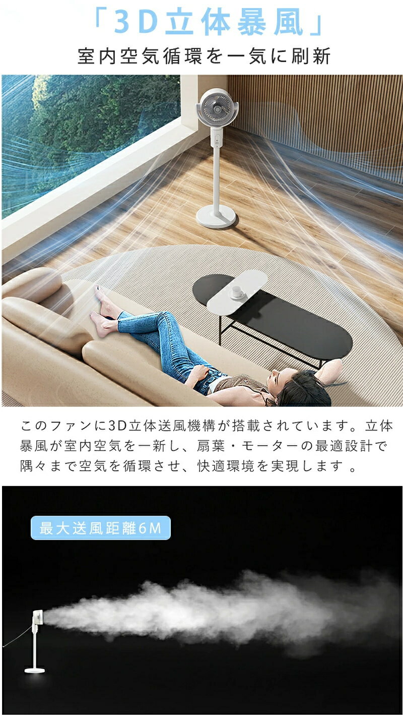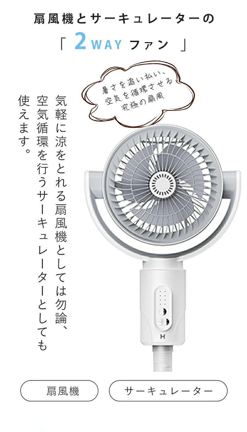 【2025最新発売モデル・猛暑対策・節電対策】扇風機 サーキュレーター DCモーター 1台多役 3段階風量調整 送風範囲20m USB給電式 パワーバンク対応 省エネ 静音 空気循環 部屋干し 梅雨 除湿 組み立て簡単 コ
