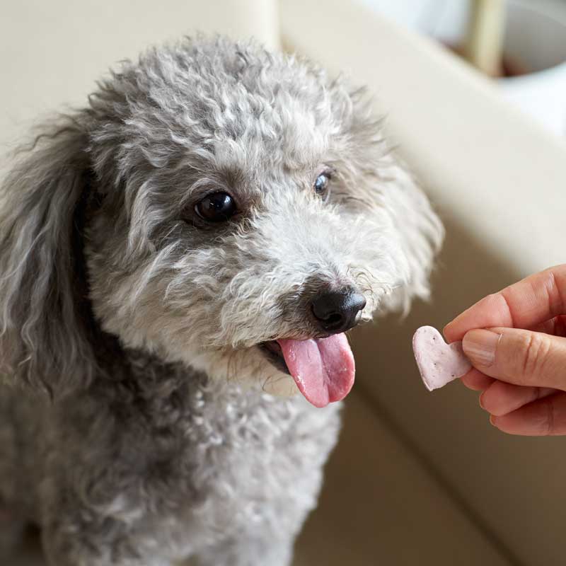※商品パッケージリニューアルにともない、通常と異なるパッケージでのお届けになる場合がございます。 オーガニック 全犬種対応 全年齢対応 無添加 国産 ヒューマングレード 500億個の乳酸菌EC-12とオリゴ糖にブルーベリーを配合、100%人間用食品原料を使用した完全無添加の手作りおやつです。 カタログ商品コード:b2353-l原産国:日本 製造元:就労継続支援A型事業所 陽だまり 免疫力が気になる老化が気になる便が安定しない眼が気になる 腸内環境を善玉菌優勢にするために、「乳酸菌そのものを取り入れる」「善玉菌を増やす食材を取り入れる」二つの考え方に基づいて、おやつで免疫力UPのコンセプトで作られたビスケットです。身体障がい者支援施設で、手作りされています。※完全手作りなので、形や焼き加減や色など、微妙に異なることがありますので、ご了承ください。ブルーベリー:ブルーベリーはポリフェノールの一種アントシアニンを含まれています。目に良い成分としても知られていますが、アントシアニン意外にもブルーベリーはビタミンE、食物繊維、ミネラルなどの栄養素を含んでいます。 内容量2700g原材料薄力粉(国産)、全粒粉(国産)、豆乳(国産)、オーガニックココナッツオイル(フィリピン産)、オリゴ糖(国産)、ブルーベリーエキス末(国産)、乳酸菌(国産)(※ココナッツオイルはオーガニック認証済み)カロリー404kcal/100g成分(100gあたり) 脂質8.35% たんぱく質10.36% 炭水化物73.10% ナトリウム1.0%未満 食物繊維4.01%給餌量の目安小型犬約30gまで中型犬約50gまで大型犬約80gまで使用上の注意年齢・体重・体調により給与量は変わります。与えすぎにご注意ください。保存方法直射日光を避け、常温で保存してください。開封後は密閉して保存し、お早めにお召し上がりください。