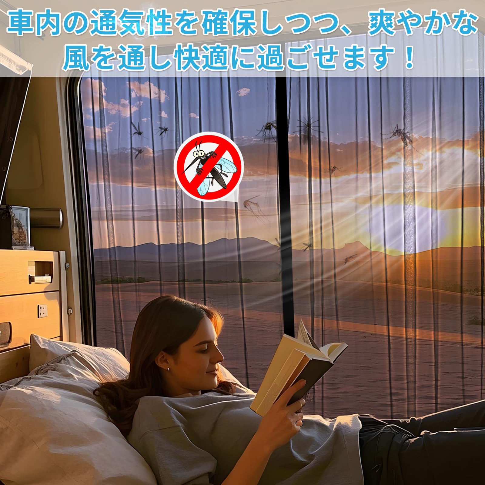 ZATOOTO 防虫ネット 車用 マグネット式 トヨタ ハイエース専用 140*160cm サイドドア用 虫除け 通気性よし 目隠し 遮光 スライドドア用 網戸 車中泊 換気 リアゲート キャンプ メッシュカーテン 取付簡単 カー用品 1枚入り ブラック CT120-HS