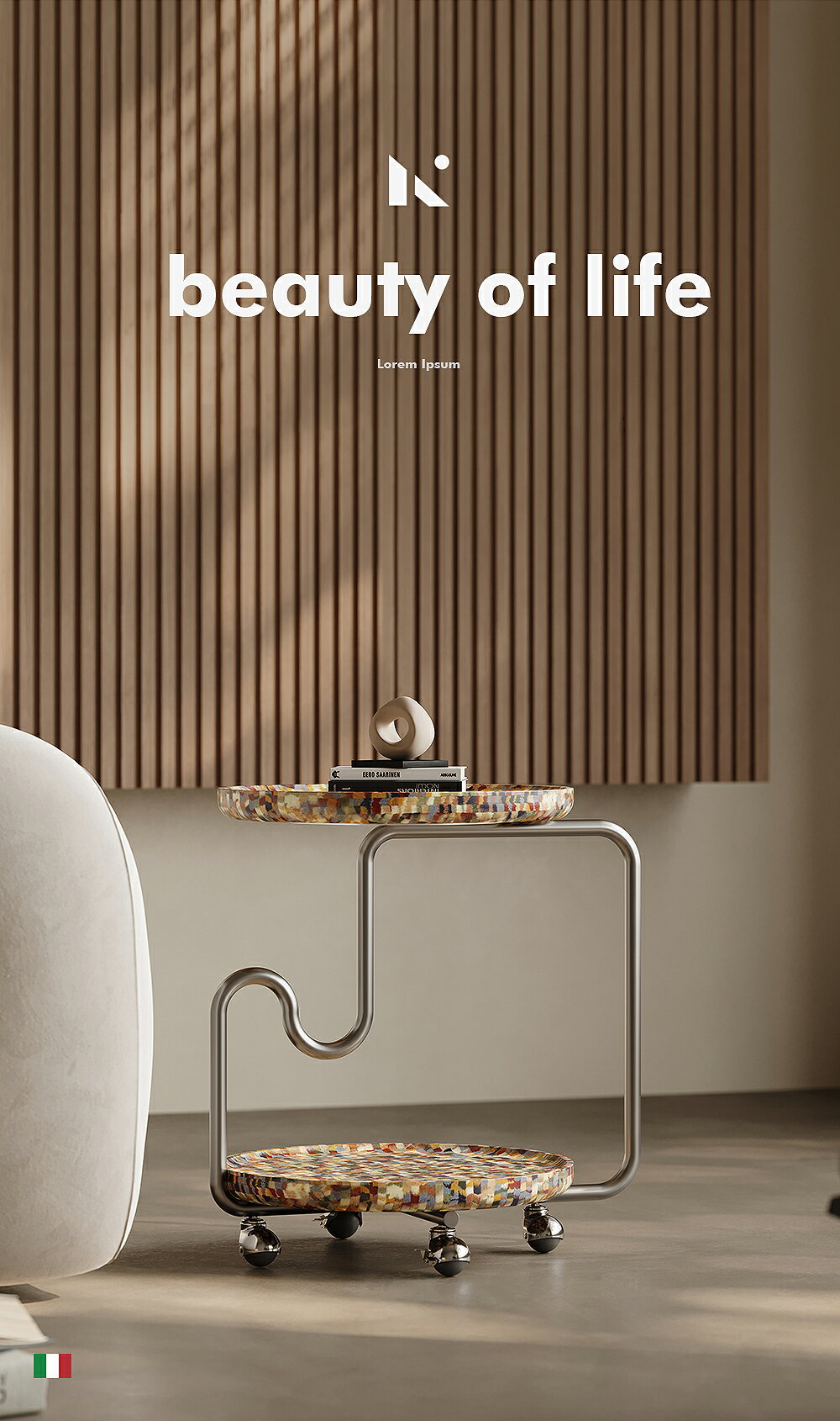 サイドテーブル ソファテーブル キャスター付き 直径40cm 丸型 完成品 ラグジュアリー スタイリッシュ オリジナル 虹色 カラフル おしゃれ かわいい 人口突板 ステンレス イタリアンモダン 北欧 モダン 一人暮らし リビング おすすめ 送料無料