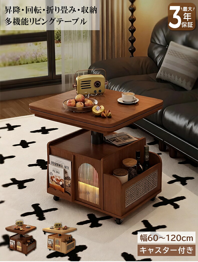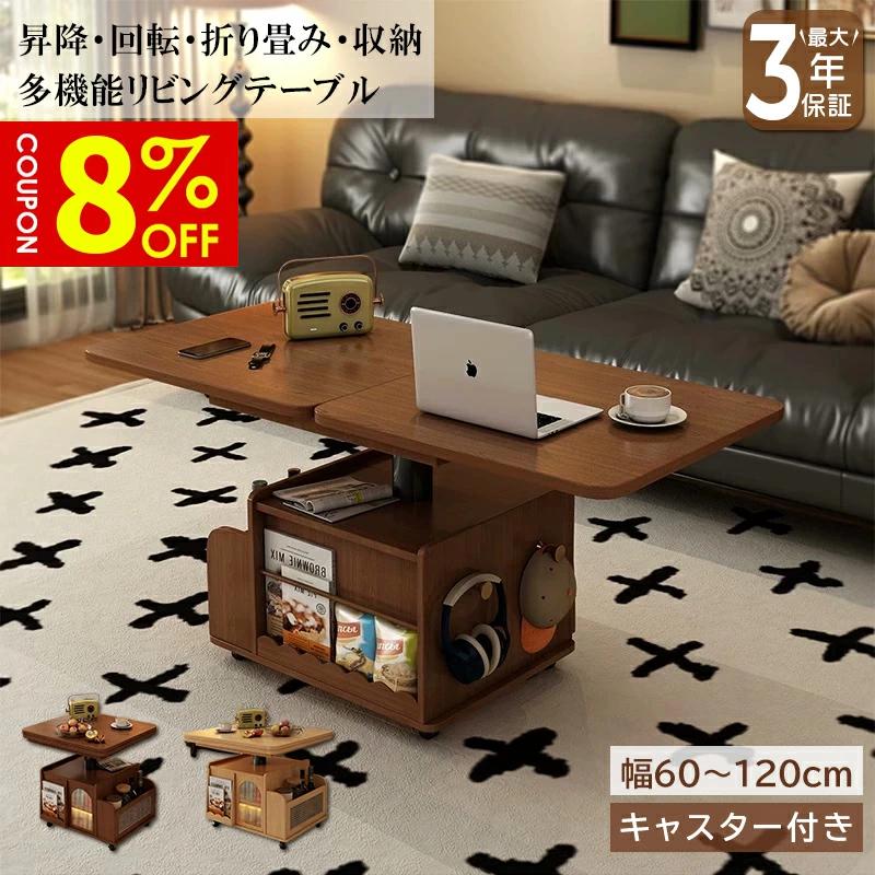 【8%クーポン有】テーブル 昇降式 リフティングテーブル 昇降テーブル ローテーブル 回転 折りたたみ 幅60cm 無垢材 収納 キャスター付き 北欧 シンプル モダン おしゃれ 高級感 リビング 省スペース 一人暮らし おすすめ