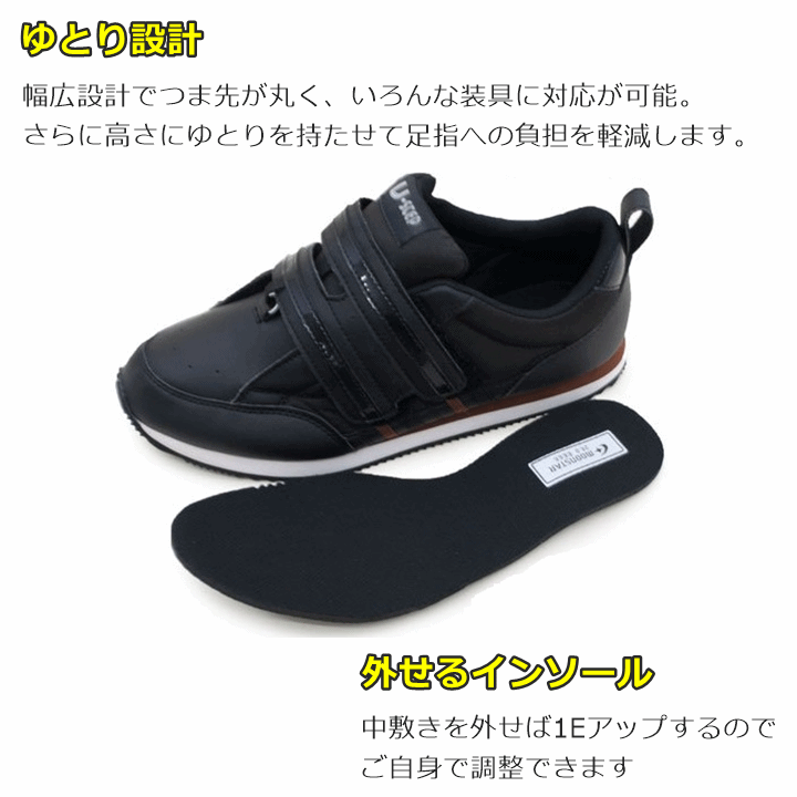 ■■■ ■■■ 商品詳細 様々な装具に装着対応、 リハビリシーンを想定したシューズです。 ベルトを引っ張るとベロが開く!!出るベロ機能搭載 ○出るベロ機能 ベルトを引っ張るとベロが自動的に起き上がり、履き口が広がります。足入れ簡単で着脱らくらくの新機能です。 ○高さ調整インソール 厚さ5mmの取り外し可能なインソール。 装具着用時は、取り外しても履けます。 ○倒れないベルト 履く時にベルトが倒れて履き口を塞いで履きにくくなるのを防ぎます。 ○ゆとり設計 ○つま先ゆったり つま先にゆとりをもたせた形状で、足の指を圧迫せずにのびのび動かせます。 ○カウンターボックス 足のゆがみを箱型構造でしっかり支えます。 ○サニタイズAg 銀の抗菌作用で臭いのもととなる菌をカット。 天然由来成分で安全です。 ○フルオープン 履き口が大きく開き、足を入れやすい設計です。 商品仕様 【サイズ】22.0〜30.0(1.0cmきざみ) ※グレーは22~26.0cmまで ※ホワイトは22~28.0cmまで 【材質】 合繊、合皮 底材:EVA、合成ゴム 【カラー】ブラック・ホワイト・グレー・ブラウン 【重量】約280g/26.0cm(片足) 【ウィズ(足囲)】 22.0・23.0 3E 24.0〜28.0 4E 【メーカー】ムーンスター 注意事項 商品画像は色合いや素材感が実際の商品と異なる場合がございます。 モニター・ディスプレイによっても写り方が変ります。予めご了承くださいませ。 ○離島・一部地域は追加送料がかかる場合があります。 ※商品のお問合せ、納期、ご注文方法のわからない場合など、お気軽にお電話くださいませ。当店よりかけなおさせていただきます。 ■■■ ■■■ ↓こちらもおすすめ!↓