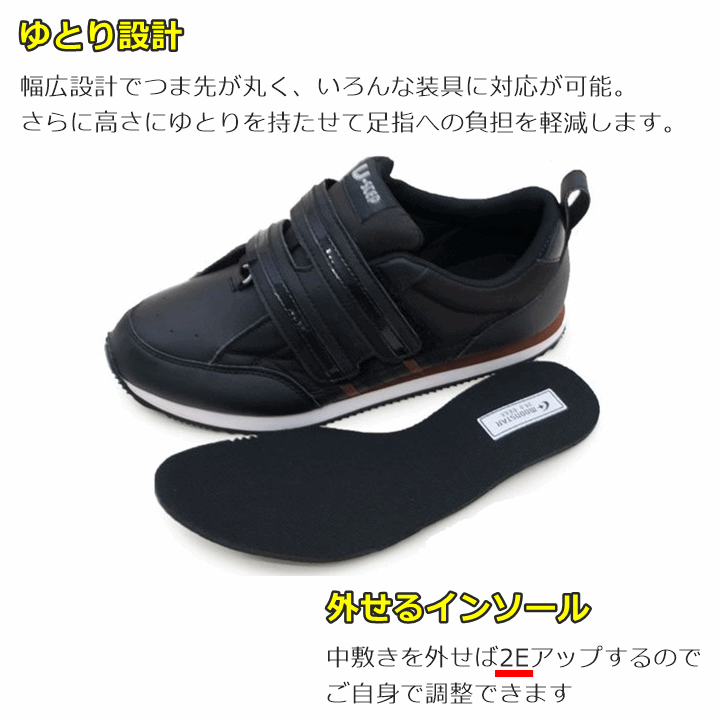 ■■■ ■■■ 商品詳細 リハビリシーンを想定した、装具対応シューズ! 甲バンドを引っ張るとベロが自動的に起き上がります。 ランニングタイプでカジュアルな服にも合わせやすく、気軽に履いていただけます。 ●ゆとり設計 幅広設計でつま先が丸く、いろんな装具に対応が可能。さらに高さにゆとりを持たせて足指への負担を軽減します。 ●フルオープンパターン 履き口を大きく広げられるので、装具をつけた足でも着脱らくらく。 ●高さ調整インソール 厚さ5mmの取り外し可能なインソール。装具着用時は、取り外しても履けます。 インソールを取り外すことによりワイズが1Eアップします。 ●滑りにくい 車椅子での足こぎにも対応した滑りにくい設計になっています。 片足販売になります。 商品仕様 【サイズ】22.0~30.0cm(1cmきざみ) グレー:22.0~26.0cm ホワイト:22.0~28.0cm 【足囲】7E(中敷を外せば2Eアップ) 【カラー】ブラック、ホワイト、グレー・ブラウン 【重量】300g(23.0cm片足) 【素 材】合繊/合皮 靴底:EVA/合成ゴム 【メーカー】ムーンスター 注意事項 商品画像は色合いや素材感が実際の商品と異なる場合がございます。 モニター・ディスプレイによっても写り方が変ります。予めご了承くださいませ。 ○沖縄・離島・一部地域は追加送料がかかる場合があります。 ※商品のお問合せ、納期、ご注文方法のわからない場合など、お気軽にお電話くださいませ。当店よりかけなおさせていただきます。 ■■■ ■■■ ↓こちらもおすすめ!↓
