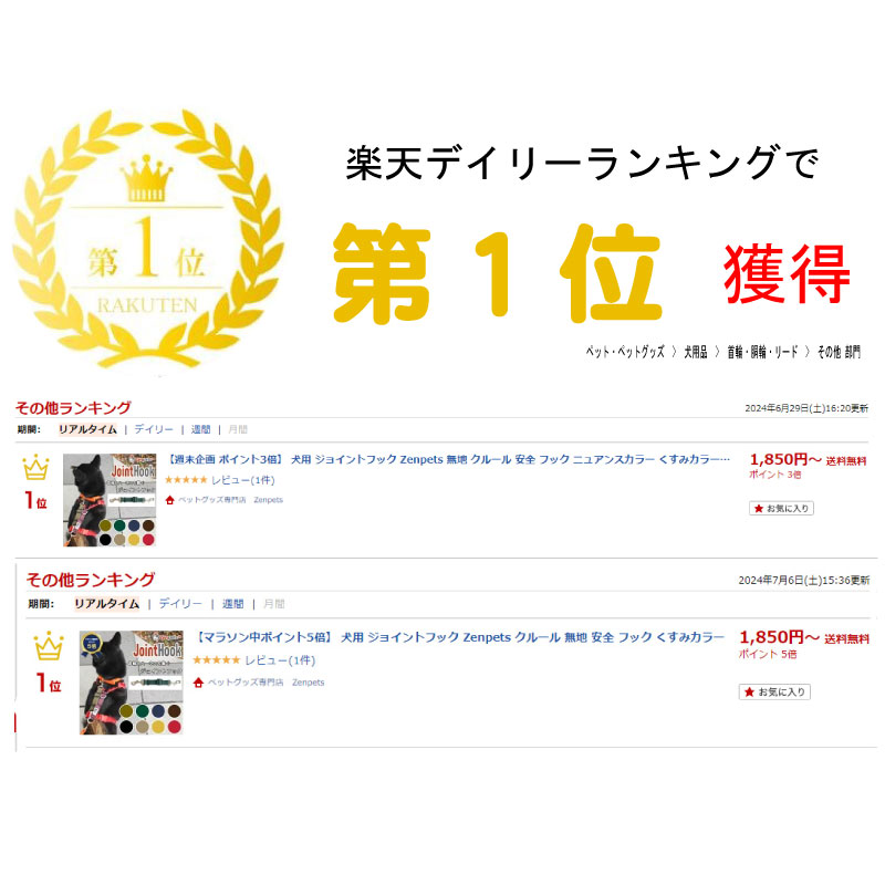 犬用 ジョイントフック Zenpets 国産 クルール 無地 安全 フック くすみカラー