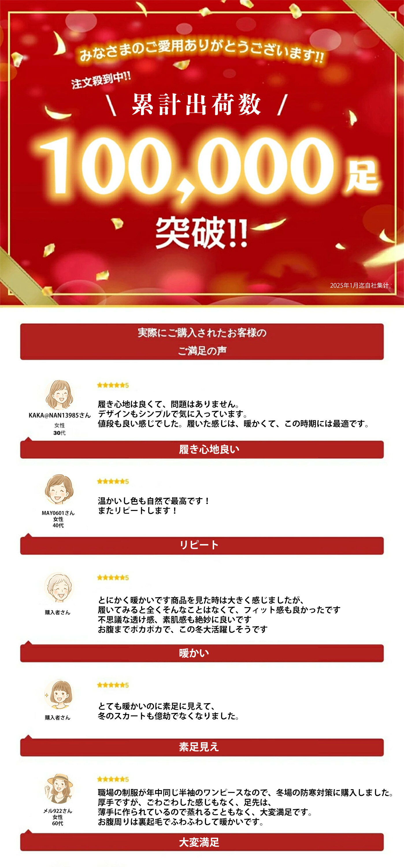 ブランド名 ZENX 商品名 フェイクタイツ 素材 70%スパンデックス、22%ポリエステル、8%ナイロン 厚さ 80g (10~25℃) 220g (0~15℃) 320g(-15~5℃) サイズ/寸法 画像内サイズ表ご参照ください。 ご使用上の注意 ・お肌に合わない場合や、かぶれ・かゆみ等を感じた場合はご使用を おやめください。 ・生地部分に爪を立て、無理に引っ張ると破れる恐れ があります。着脱の際はご注意ください。 ・締め過ぎと感じる場合は適度な着脱を繰り返してください。 ・使用感には個人差があります。 ・ご使用中、またはご使用後に異常を感じた場合はすぐにご使用をおやめ ください。 ・火気のそばや高温多湿な場所、直射日光の当たる場所に は保管しないでください。 ・水や汗等で湿った状態で強い摩擦を受ける と他のものに色移りするおそれがあります。 ※万一色移りした場合は早め に洗濯してください。 ※本来の目的以外でのご使用はおやめください。 ※お使いのモニターの発色具合によって、実際のものと色が異なる場合がございます。 ※当商品は機械による生産の過程上、どうしても“生地を織る際の糸の継ぎ目”や多少の“ほつれ”、他纎維の“混紡”、また、採寸方法により多少の“誤差”1~3cmが生じる場合がこさいます。 予めご理解くださいますよう、お願い申し上げます。 企画デザイン JAPAN 生産国 CHINA ★ お 気 に 入 り 追 加 は コ チ ラ > >★ お 気 に 入 り 追 加 は コ チ ラ > >