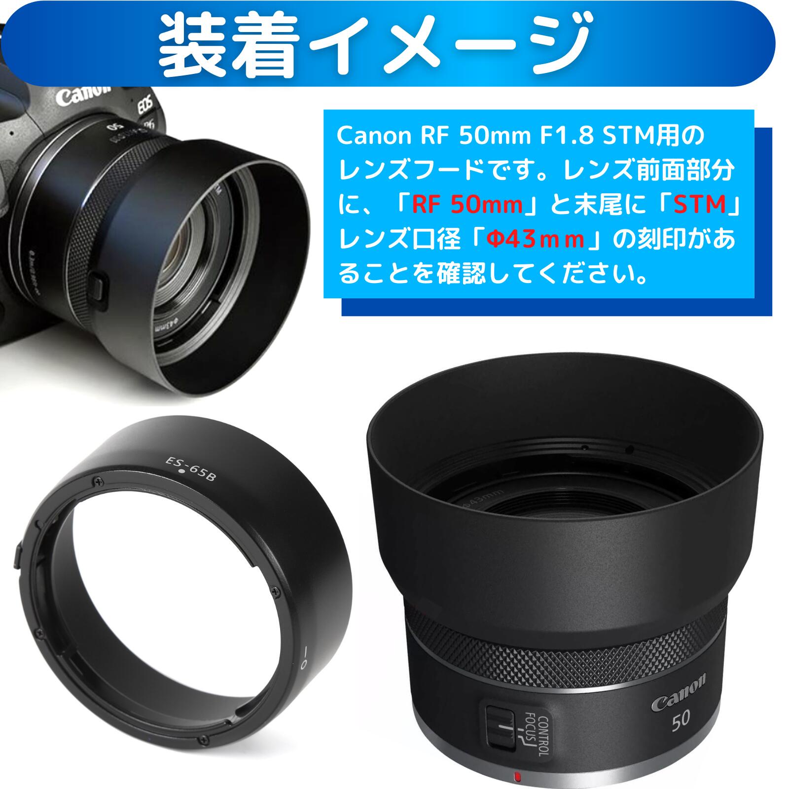 レンズフード ES-65B 互換 [ Canon RF 50mm F1.8 STM レンズ 用 ] ES65B 内面シボ加工(雑光反射軽減)
