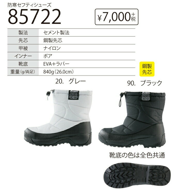 送料無料 ジーベック XEBEC 85722 防寒セフティシューズ S M L LL 3L 4L xebec 作業着 作業服 安全 靴 秋冬対応