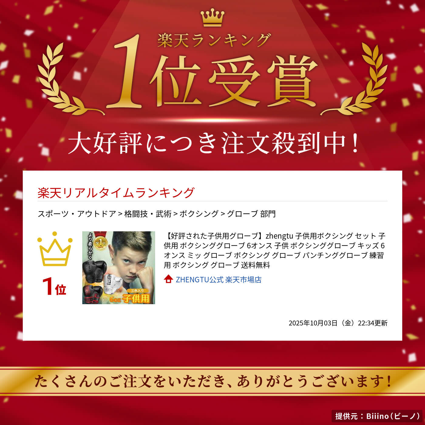 ZHENGTU 子供用ボクシンググローブ セット 商品の特長 子供専用設計の6オンスグローブ 子供の手にフィットするよう特別設計された6オンスサイズ。初心者のお子様でも安心して使える軽量設計です。 高品質・高耐久PUレザー採用 高品質なPUレザー素材を使用し、耐久性と衝撃吸収性に優れています。お子様の安全なトレーニングをサポートします。 衝撃吸収性抜群の高密度スポンジ 内部には衝撃吸収力の優れた高密度スポンジを使用。拳や手首をしっかり保護し、安全なパンチング練習が可能です。 通気性に優れ快適な装着感 通気性の良い構造で、長時間の使用でも手が蒸れにくく、快適な装着感をキープします。 着脱簡単なベルクロ仕様 手首部分はベルクロ式で、子供でも簡単に着脱が可能。練習中のズレを防ぎ、しっかりフィットします。 幅広い格闘技トレーニングに対応 ボクシングはもちろん、キックボクシング、空手、テコンドーなど幅広い格闘技でのトレーニングに最適です。 限定価格2,999円で販売中 今だけ限定特別価格2,999円でご提供!お得なこの機会をお見逃しなく。(送料無料) お子様へのプレゼントにも最適 かわいいデザインと高品質な作りで、お子様の誕生日やクリスマスなどのプレゼントにも喜ばれます。 【材質】 高品質PUレザー、高密度スポンジ(衝撃吸収材) 【サイズ】 6オンス(子供用) 【重量】 約180g(片手・6オンス仕様) 【注意事項】 【注意事項】 ・当店の商品は全て国内から配送されます。 ・国内配送の商品は国内でのお買い物と同じく消費税が発生いたします。関税はかかりません。 ※色がある場合、モニターの発色の具合によって実際のものと色が異なる場合がある。 メーカー希望小売価格はメーカー商品タグに基づいて掲載しています。関連商品はこちら【大好評の子供用セット!】zhengtuグロ...【好評された大人用グローブ】zhengtu ...★6連冠達成★【RIZIN現役「神龍誠」推薦...★楽天1位★zhengtu キックミット キック ...【買うとグローブを特典付き】 zhengtu...
