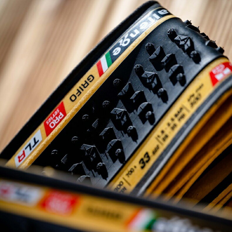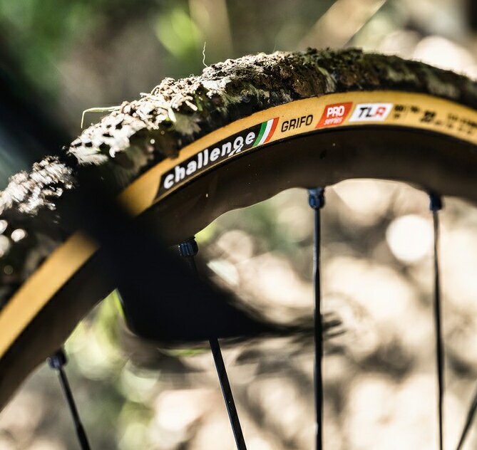 ◎世界のシクロクロスレースのベンチマークとなっているチャレンジのハンドメイドCXタイヤです。300TPIスーパーポリエステルケーシングを採用し、チューブラーと同様の工法で作られることでチームエディションソフトと同様のしなやかさを実現。フックレスリムとの互換性があり、23mm幅のリムへの装着でUCIレギュレーションサイズに収めることができます。GRIFOはオールラウンド用タイヤとして最も汎用性が高く、CXの歴史そのものと言える伝統的なトレッドパターンを備えています。センターとサイドに配されたノブは転がりの軽さ、ハイスピードコーナーでの高いグリップ力をもたらし、ウェット、ドライ、柔らかい路面、岩場のような硬い路面、木の根に覆われた路面などあらゆる局面で優れた性能を発揮します。 ●仕様:チューブレスレディ ●タイヤサイズ:700×33mm ●カラー:ブラック/タン ●ケーシング:300TPI ●重量(公表値):380g ●フックレスリム対応 ●ハンドメイド:手作業による伝統の製法で高TPIのケーシングに天然ゴム製のトレッドを組み合わせたチャレンジを代表するレーシングタイヤ。チューブレスレディはタイヤ内部にエア漏れ防止/耐パンクプロテクションコーティングが施され、ビード部分にもリムとの擦傷を防ぐため保護ストリップが加わり長寿命化を実現 ※チューブレスレディタイヤはインナーチューブの有無に関わらず装着可能な準拠していないホイールを使用すると、タイヤのケーシングがビードより上で切断されタイヤが故障し、ライダーが重傷を負う可能性があります