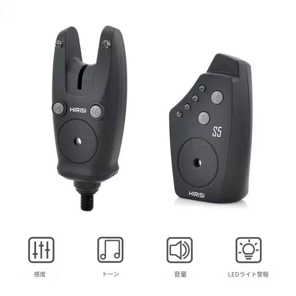 説明 ? ワイヤレスで防水:絡まったワイヤーや水による損傷の心配はもうありません。このアラームセットはワイヤレスで防水なので、どんな釣り環境でも使用できます。 ? 釣りバイトアラーム:内蔵の釣りバイトアラームで、魚のバイトを見逃すことはありません。これらのアラームは魚がバイトしたときに警告するので、素早く反応して魚を捕まえるチャンスを増やすことができます。 ? 釣りアクセサリー:このアラームセットは、どんな釣り人にも必須のアクセサリーです。より多くの魚を捕まえ、全体的な釣り体験を向上させるのに役立ちます。 ? S5:S5モデルは、Hirisiの最新かつ最高のモデルです。改良されたテクノロジーとデザインを特徴とし、魚のバイトを警告するのにさらに効果的です。 鯉釣りアラームワイヤレスバイトアラームS5セット 特徴:LEDアラーム釣りバイトアラームセットは、夜釣りや弱い光環境に最適で、フックにかかった魚やロッドを見逃す心配がありません。 数量:1セット 説明: 釣りアラームの特徴: 1.各セットには独自のエンコード周波数があります 2.ゴム仕上げの外装ケース 3.オン/オフスイッチ 4.音量、トーン、感度を変更するプッシュボタン 5.高出力スピーカーによるLEDアラーム 6.低バッテリー警告 7.AAA電池2個が必要 8.LEDスウィンガー用追加ジャック 9.Oリング付き標準固定ボルト 受信機の特徴: 1.ゴム仕上げの外装ケース 2.120メートル以上の伝送範囲 3.赤/緑/青/黄色のLEDライトが4つの釣りアラームに一致 4.調節可能な音量、振動ボタン 5.AAA電池3個が必要 6.高出力スピーカーによるLEDアラーム信号