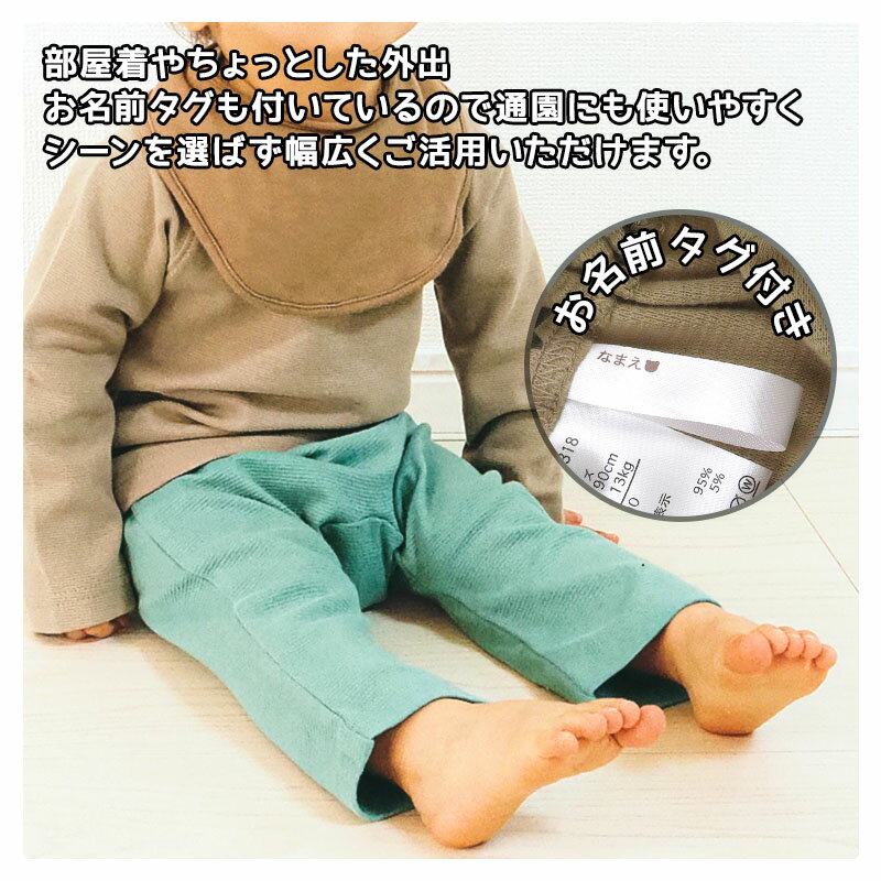 メーカー希望小売価格はメーカー商品タグに基づいて掲載しています 【対象】子供服 こども服 子ども服 キッズファッション キッズ きっず Kids KIDS 低学年 小学生 幼稚園 保育園 幼児 園児 学校 ベビー べびー baby BABY 赤ちゃん 男の子 男児 ボーイ ボーイズ BOY boy Boy BOYS boys 女の子 女児 ガール ガールズ GIRL girl Girl GIRLS girls ユニセックス 男女兼用 兄弟 姉妹 コーデ お揃い【さまざまなシーンにオススメ】通園 通学 幼稚園 保育園 小学校 スクール イベント 運動会 発表会 お出かけ お散歩 公園 お誕生日会 パーティー テーマパーク 遊園地 ハロウィン クリスマス バレンタイン お正月 ゴールデンウィーク デイリー 休日 お祝い 出産祝い 内祝い プレゼント【イメージ】デザイン かわいい 可愛い カワイイ キュート おしゃれ オシャレ お洒落 カジュアル お洒落着 【ショップ】zooland Zooland ZooLand ZOOLAND ズーランド ずーらんど ファッション アパレル ブランド 日本企画類似商品はコチラ キッズ ハーフパンツ ボトムス 男の子 女の690円~キッズ 10分丈パンツ スウェットパンツ 裏起1,990円~ キッズ 5分丈パンツ ハーフパンツ 男の子 790円~よく一緒に購入されている商品 キッズ ストレッチパンツ ボトムス 男の子 990円~ キッズ Tシャツ 半袖 男の子 プリント 半500円~ キッズ プリント ロンT 長袖 Tシャツ ア690円~2025/12/01 更新 SPEC 商品番号 221317 ブランド GrinLab(グリンラボ) 商品説明 通園・保育所・デイリーのお着替え用パンツとして大活躍する モンキーパンツ! 【生地】スパンフライス ・よこ方向のストレッチ性に優れ、優しくフィット。 たて方向にも程よく伸び、安定した履き心地です。 ・厚すぎず薄すぎず、 春秋はもちろん、夏や冬の室内履きにも最適 オールシーズンご利用いただける優れものです。 【デザイン】 ・ベーシックなデザインで選びやすく、 こだわりのカラーと可愛いプリントアイテム ・カラーバリエーションが豊富 色ちがいやデザイン違いでまとめ買いがおすすめです。 ・転びにくい7分丈です。 少し大きめをお選びいただいて、長くご使用いただいても良いですね。 【機能性】 ・お尻の大きな丸マチは可動域が広く、 おむつの上からでもすっぽり包みこみます。 ・ウエストには、食い込みにくい2.5cmの平ゴムを使用。 程よいフィット感で、下がりにくくしっかり支えます。 入替用ゴム穴付きで、交換すれば長くご使用いただけます。 素材 スパンフライス 組成 綿95%、ポリウレタン5% シーズン オールシーズン向け 生地の伸縮性 あり 生地の厚み 厚い 裏地 なし ポケット なし 仕様 丸マチ/ウエストゴム/ゴム取り換え口付き 取り扱い方法 洗濯機洗い可/酸素系・非塩素系の漂白剤のみ使用可/タンブル乾燥不可/日陰吊り干し/アイロン可/ドライクリーニング不可/ウエットクリーニング可 注意事項 ・濃色の時は、染色の性質上、色落ちすることがありますので他のものと分けて洗濯してください。 ・洗濯後は形を整えて直ちに干してください。 ・蛍光増白剤入りの洗剤はお避けください。 ・アイロンをあてる場合、当て布をして下さい。 企画・原産国 日本企画・中国製 SIZE cm 70 80 90 95 ウエスト 36 38 40 42 総丈 33 36 38 40 股下 17.3 19.8 21.8 23.8 表記サイズは平置きで採寸しておりますので、商品によっては多少の誤差が生じる場合がございます。 サイズは個人差がありますので、お子様のサイズに合わせてご注文ください。 ATTENTION ※モニター環境によって、色味が実際の商品と若干の誤差が生じる場合がございます。 関連商品はコチラ
