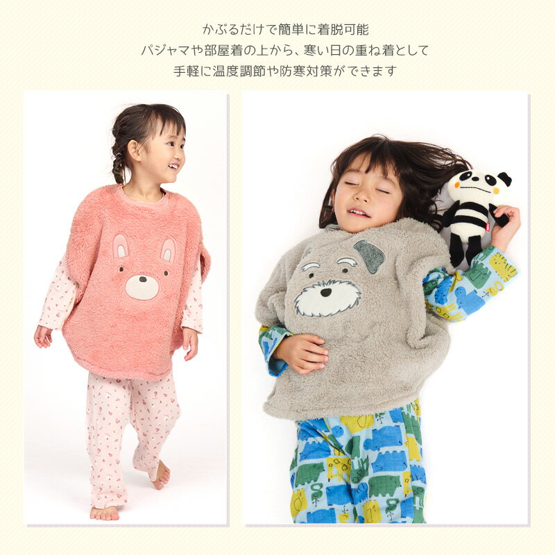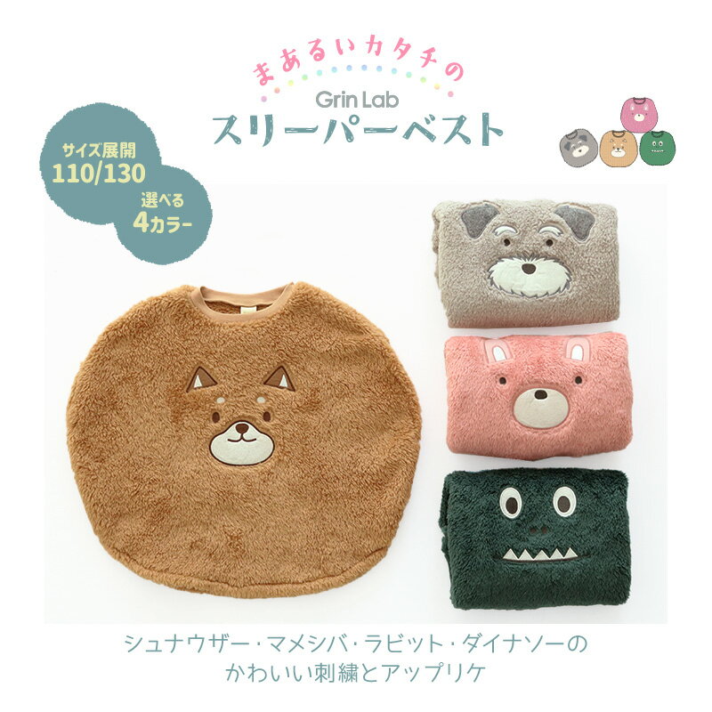 スリーパー キッズ フリース 丸型 ふわふわ かぶり マイクロフリース ベスト 男の子 女の子 あったか おくるみ ( 110-130cm )【 GrinLab グリンラボ 】 恐竜 ダイナソー 犬 いぬ うさぎ ウサギ 兎 柴犬 動物 アニマル ボア 保温 秋 冬 ルームウェア パジャマ 寝巻 寝間着