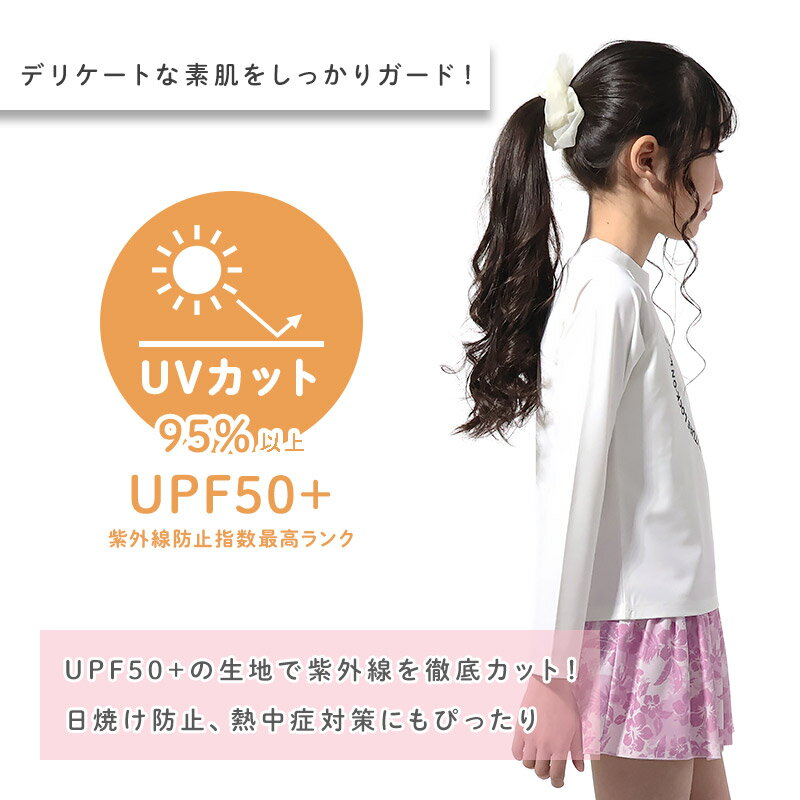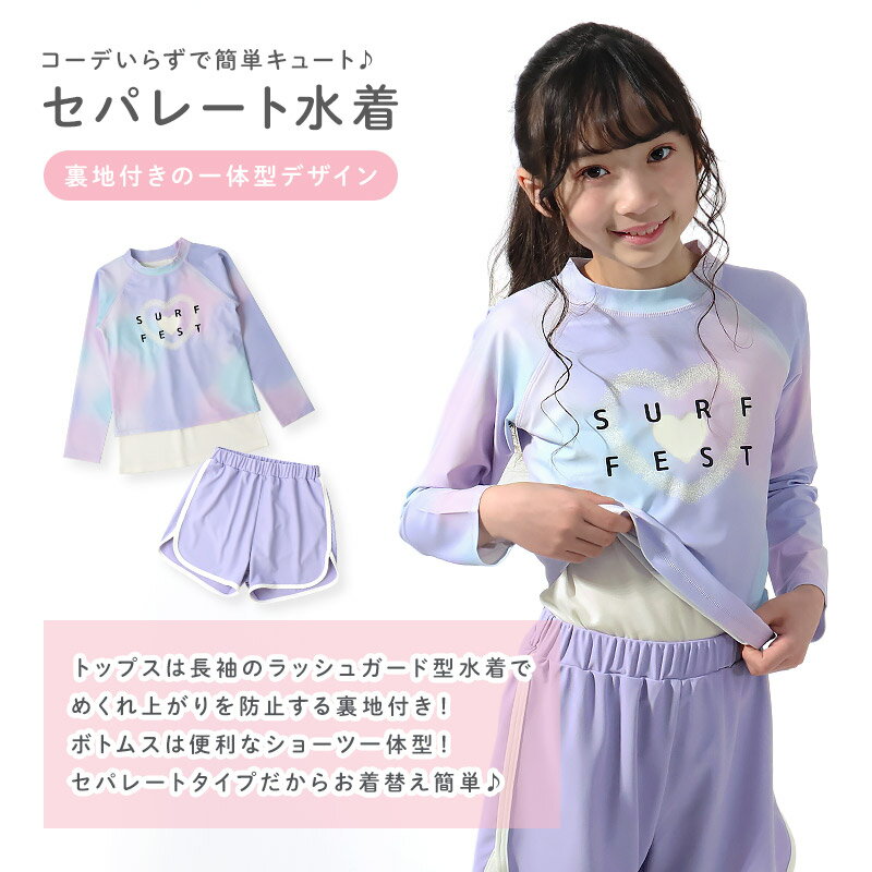 【送料無料】 インナー付き 水着 キッズ 女の子 セパレート水着 2点セット 長袖 ラッシュガード UV加工 UPF50+ スイムウェア ストレッチ プルオーバー 子供水着 キッズ水着 ガールズ ハート 花柄 フラワー プール スイミング スクール 夏 110 120 130 140 150 160