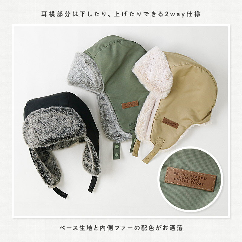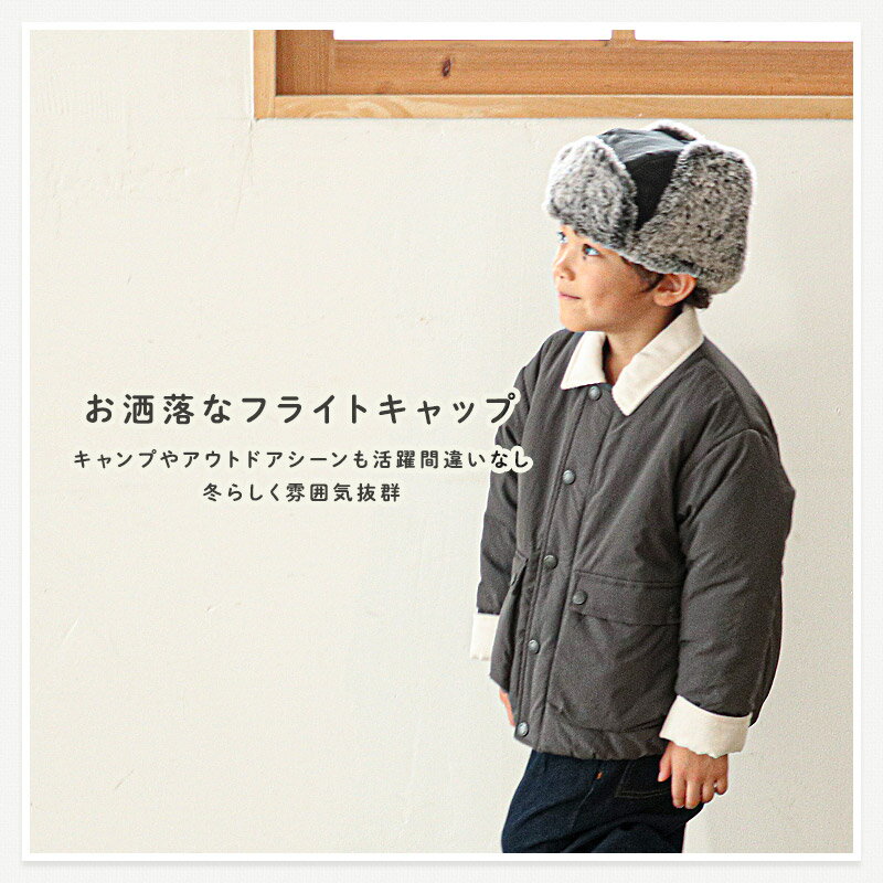 キッズ フライトキャップ 帽子 耳当て付き 男の子 女の子 キャップ 子供用 帽子 (52-54cm)【GrinLab グリンラボ】 撥水 フェイクファー イヤーフラップ パイロットキャップ ロゴ 配色 ミリタリー 暖かい 防寒 保温 キャップ ボーイズ ガールズ 暖かい 雪遊び