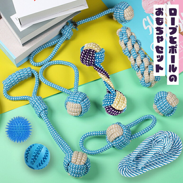 遊びながら健康サポート!丈夫で楽しいロープトイセット 愛犬の元気を引き出すロープトイ7点とボール3点がセットになったおもちゃセットです。 丈夫な素材で作られており、噛むことによる歯のケアや、引っ張り合いでの運動不足解消に最適! 引っ張ったり、キャッチボールをして遊ぶことで、愛犬との絆も深まります。 ストレス解消や暇つぶしにも役立ち、飽きずに長く遊べるバリエーション豊かなアイテムが揃っています。 ※生産時期により色誤差・仕上がり寸法誤差がある場合がございます。 ※モニターによって実際のものと色が異なる場合がございます。 ※メール便(ネコポス・送料無料・最短翌日お届け)での発送となります。 ※ □MADE IN CHINA