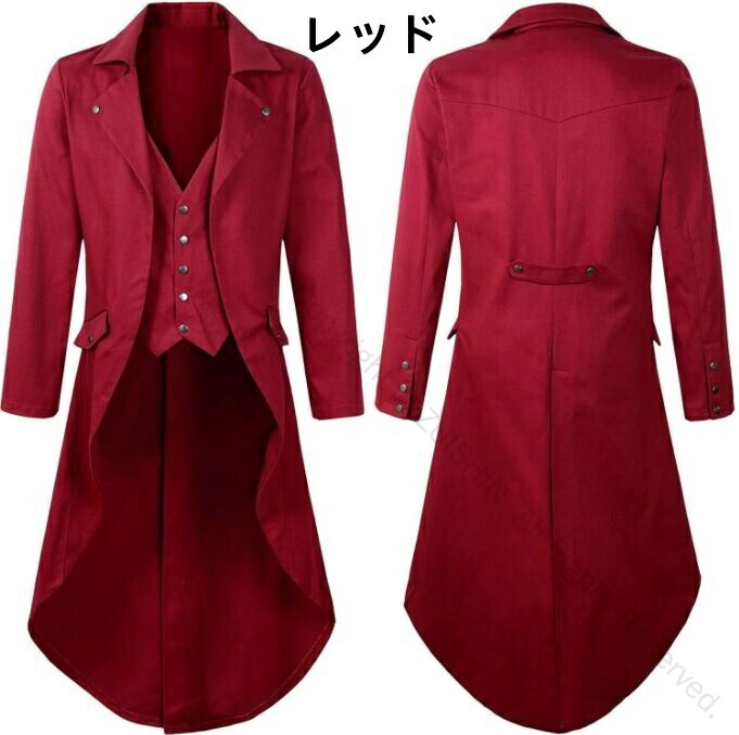 大人用コスチューム メンズロングジャケット 舞台衣装 欧風コート ヨーロッパ風 紳士探偵執事 コスプレ ステージ衣装 ハロウィンパーティー 学園祭 お芝居 舞台衣裳 仮装 変装 パーティー イベント 12色 S-5L 軍 緑 黒赤 紫 青 ネイビー