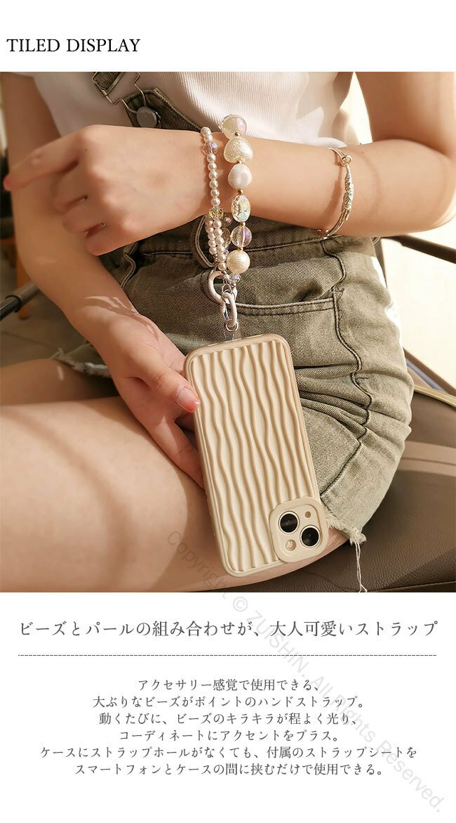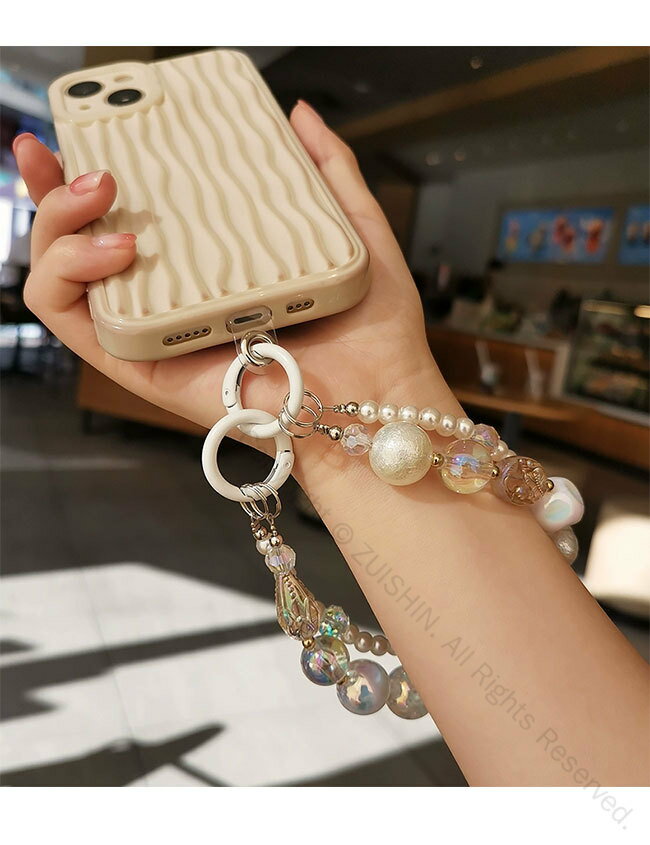 スマホストラップ ハンドストラップ スマホショルダー 携帯ストラップ ストラップホルダー キラキラビーズ アクセサリー パール 大人用 落下防止 装着簡単 手首用 おしゃれ 挟むだけ 丈夫 軽量 iPhone Android 全機種対応