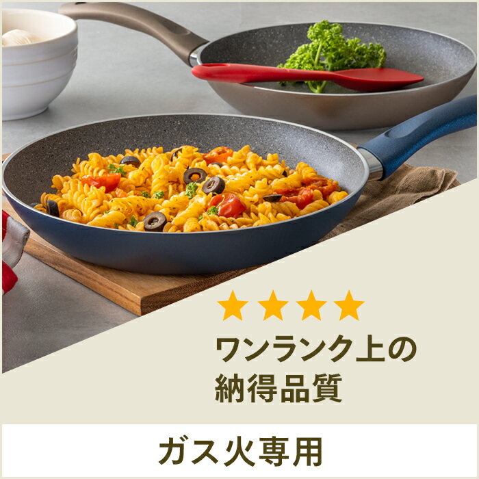 全面が石のように美しいコーティング。 全面が石のように美しいコーティングのシリーズ。V字型のステイクールハンドルデザインで、調理中もハンドルが熱くなりにくく快適に調理が行なえます。 グラニチウムエクストリームコーティング 耐摩耗性に優れた5層のコーティング。金属ヘラの使用可能。 ※ フチが液だれしにくい形状に変わりました。 おすすめの ガラス蓋 はこちら 〉 IH対応は トリノシリーズ をお選びください 〉 スペック 直径28cm 重量1150g 縦(本体+ハンドル)489mm 横(本体幅)287mm 高さ(ハンドル含む)48mm 生産国イタリア 熱源IH非対応 材質アルミニウム、ステンレス 内面コーティンググラニチウムエクストリーム(フッ素樹脂加工) 保証5年 食器洗い乾燥機使用可能