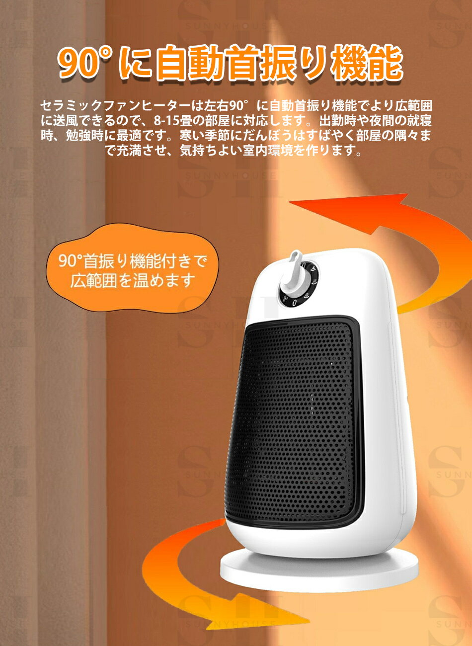 商品特徴 【2秒速暖・3段階温度調節・広範囲送風】最新改良版電気ファンヒーターは高電熱転換率のPTCセラミックが内蔵され、2秒で急速加熱でき、大風量立体送風、即暖。また、セラミックヒーターは高温風(1200W)、低温風(900W)。大きめの送風口でパワフルで広範囲送風、12畳の部屋に対応して、すぐ全身をポカポカになります、従来品の電気ヒーターと比べで送風範囲さらにアップ。 【発振塔均一分配熱】セラミックファンヒーターは左右90°に自動首振り機能でより広範囲に送風できるので、8-15畳の部屋に対応します。出勤時や夜間の就寝時、勉強時に最適です。寒い季節にだんぼうはすばやく部屋の隅々まで充満させ、気持ちよい室内環境を作ります。 【コンパクトで軽量】約1.3kg、18*18*30cmのコンパクト設計で、女性が運んでもラクラク。放置にも収納にも優しいので、トイレや脱衣所などの狭い空間をあたためる場合や、勉強の時とか料理を作る時とか仕事する時とか、足元に置くのが一番。 【過熱保護・転倒OFF】 充実した安全機能、安心、安全は何よりの第一。足元暖房の本体は難燃性に優れたV0難燃ABS耐火素材を採用しており、使用中に熱くなりにくく、赤ちゃんや子供、ペットがいるご家庭に使用してもご安心、電気ファンヒーターの下部に転倒防止ボタンがあり、倒れると電源が自動的に切れます。 商品仕様 ●商品名:セラミックヒーター ●カラー:ホワイト+ブラック ●タイプ:2種類(つまみ式とタッチパネル式) ●加熱方式:PTCヒータ加熱 ●温度調整:3段階 ●定格電力:1500W ●重量:1.3kg ●ノイズ:50-60dB ●サイズ:18×18×30cm ●定格電圧:100-110v/AC 50-60 ●適用面積:11-20平方メートル 注意事項 ※海外輸入製品のため、箱が潰れる可能性がありますが、お気になる方はご注意ください。 ※ラッピングは対応しておりません。 ※予告なく仕様変更になる場合がございます。 ※日本語表記はございません。パッケージ言語は中国語もしくは英語です。 ※写真はイメージです。実際の商品と若干異なる場合がございます。 ※基本は全国一律発送無料と対応させていただきますが、沖縄・へお届けの場合は2000円の送料をご請求させていただきます。 ※色味やサイズが異なるなどのクレームはご対応致しかねますので、ご了承ください。 ※商品のサイズは採寸方法によって、若干な誤差が生じる場合はあります。ご了承ください。 ※こちらの対応と商品について何かご不満がありましたら、「悪い評価」を付ける前に一度当方とご連絡ください。出品者の誠意を持って最後まで対応いたします。 ※商品の輸送時間が長いため、発送していた際に外装の破損や輸送の途中に付いた小さなキズによる返品はお受付しかねます。 品質保証 ◎※出品する商品は全て新品未使用です。 ◎※初期不良の場合は到着後1週間以内にご連絡ください。 ◎※初期不良の場合は写真やビデオをご提供下さい、確認後無料で新品交換もしくは御返金致しますのでご連絡下さい。 ◎※写真やビデオをご提供出来ない場合は技術者と確認できません、返品返金対応出来ない可能性が御座います、予めご了承ください。 関連キーワード(本商品の説明ではありません) ヒーター 小型 セラミックファンヒーター 足元 暖房 省エネ 速暖 600W/400W ファンヒーター 電気 静音 角度調節 転倒オフ 過熱保護 ミニ セラミックヒーター 電気ヒーター トイレ 脱衣所 オフィス 寝室 卓上セラミックヒーター 小型【2秒で速暖!】電気ストーブ ヒーター 小型 暖房器具 省エネ 電気ファンヒーター 2段階温風切替 650W/800W ファンヒーター タイマー機能 高性能集塵フィルター付き 過熱保護 転倒安全装置 即暖 セラミックファンヒーター 大風量 速暖 電気ストーブ 電気ヒーター 足元 スリム タワーセラミックヒーター 小型 400W/600W ヒーター 速暖 省エネ 静音 セラミックファンヒーター 転倒OFF 過熱保護 暖房器具 操作簡単 ダイヤル式 足元 デスク下 脱衣所/トイレ/寝室/車中泊/キッチン/職場/キャスター セラミックヒーター 小型 【2024冬革新型&人感センサー】速暖 電気ヒーター セラミックファンヒーター 省エネ 大風量 1200W ヒーター 3モード切替 100°首振り 8Hタイマー 転倒オフ 過熱保護 足元ヒーター 電気ストーブ ファンヒーター 暖房器具 リモコン付き 脱衣所 足元 トイレ オフィス