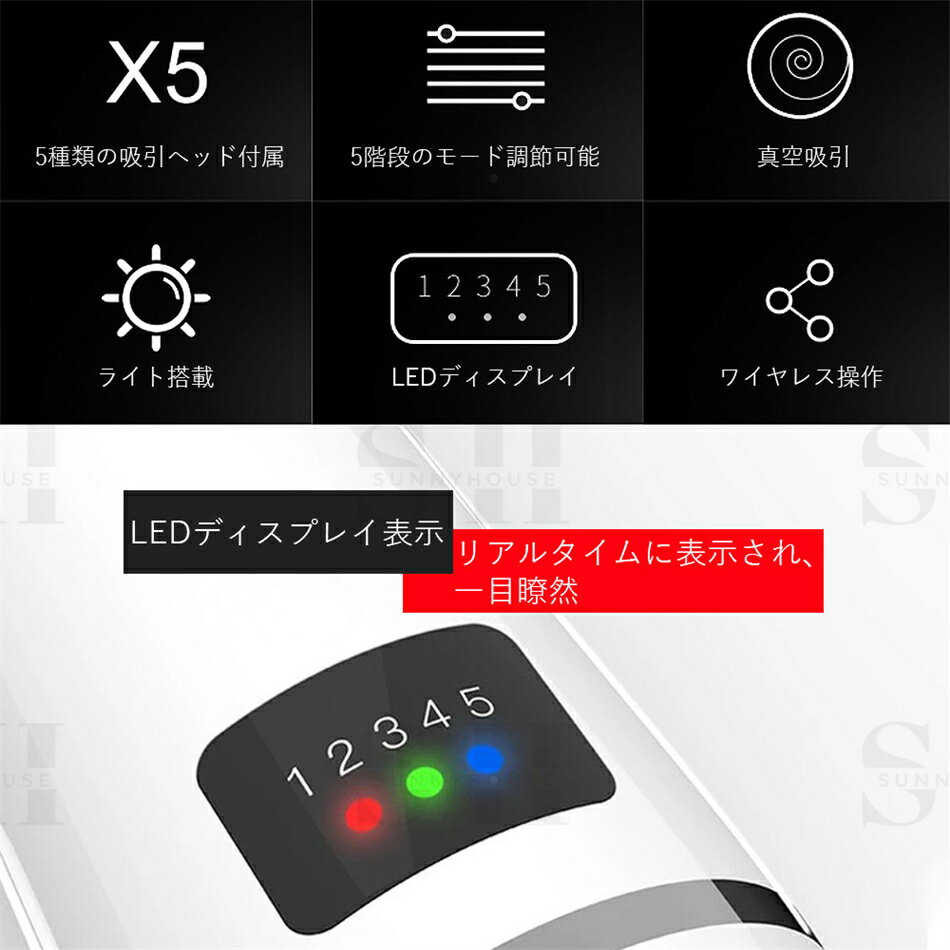 毛穴吸引器 毛穴 吸引 美顔器 いちご鼻 鼻 角栓 除去 毛穴ケア 5種ヘッド 5段階吸引力調整 毛穴クリーナー クリーン 毛穴 黒ずみ 毛穴汚れ クレンジング フェイスケア スキンケア 男女 ニキビ あご いちご鼻 毛穴吸引機 エステ吸引 プレゼント